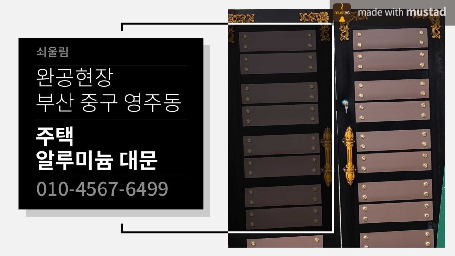 | [부산 대문] 부산 서구 동대신동 - 주택 알루미늄 대문 제작, 시공, 설치 (0) | 2022.08.10 |